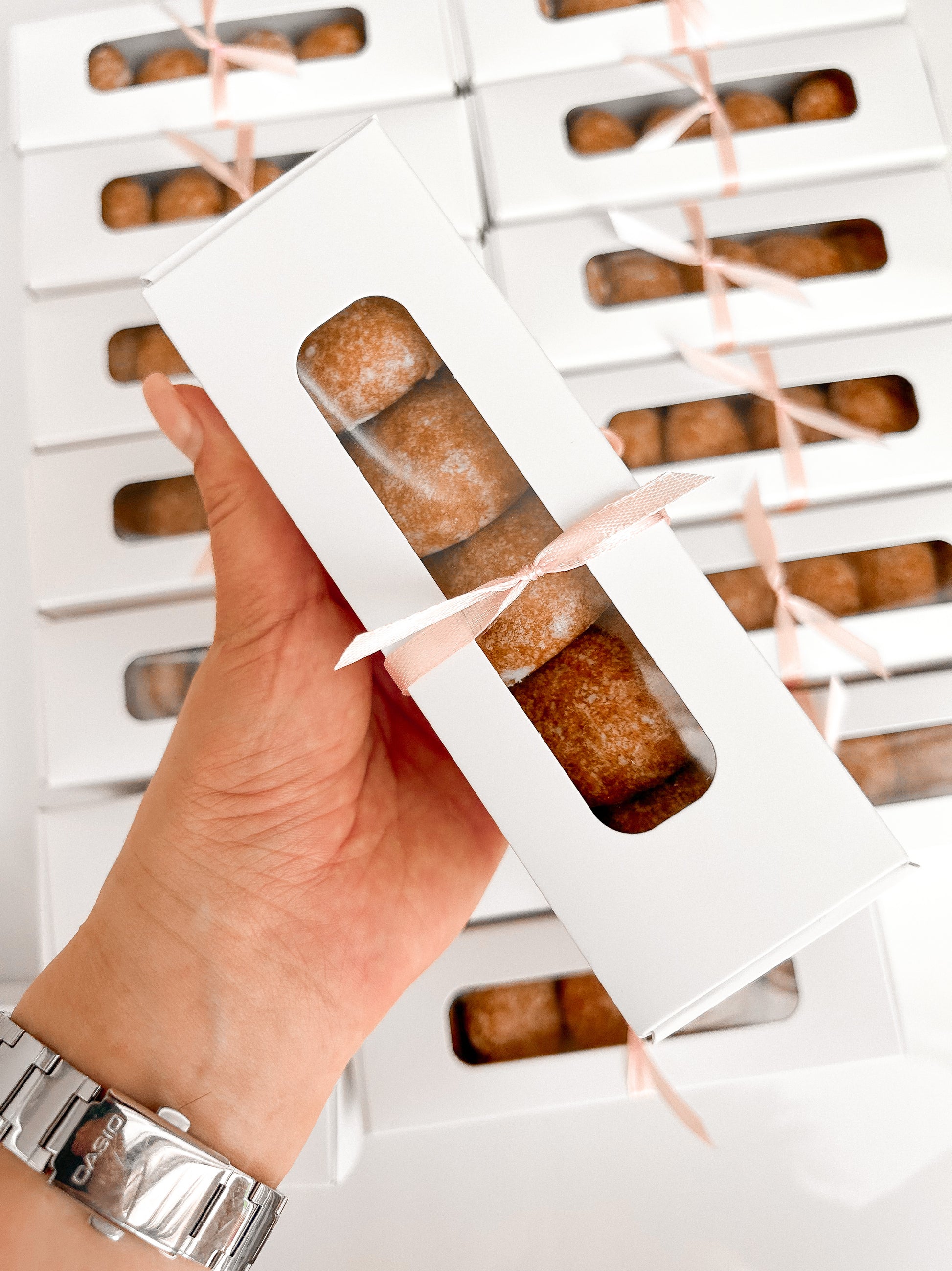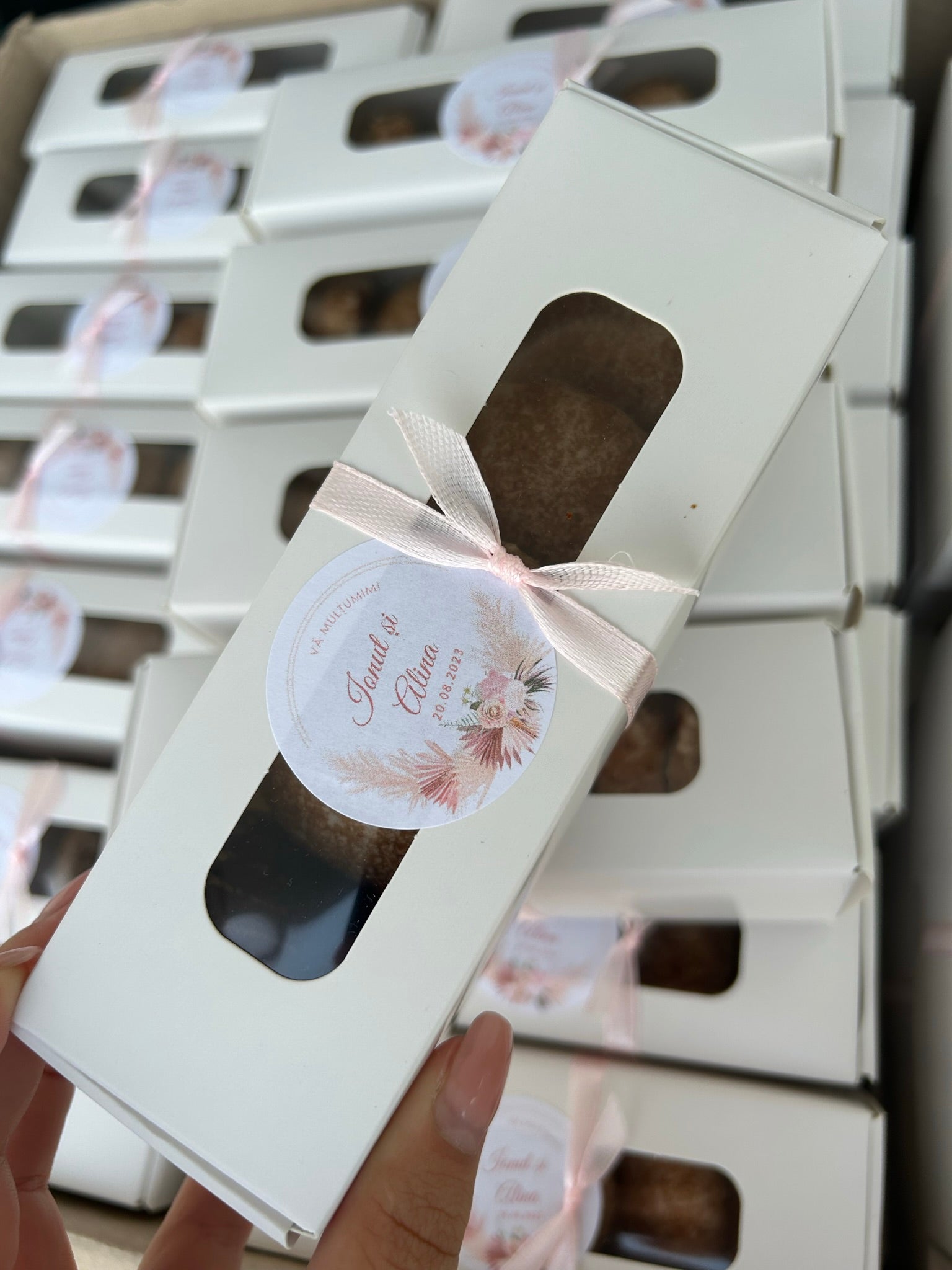 Un cadou dulce și tradițional, reinterpretat într-o formă elegantă. Cutia conține 6 bucăți de turtă dulce, atent ambalate într-o cutie personalizată cu etichetă realizată în funcție de tema evenimentului.